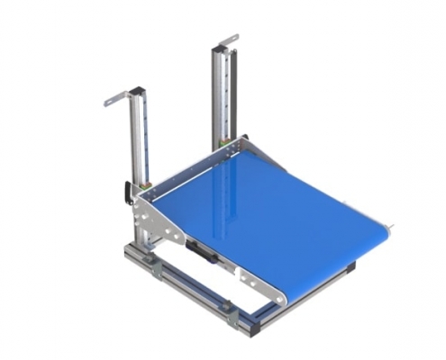 Heavy product belt with motorized height adjustment